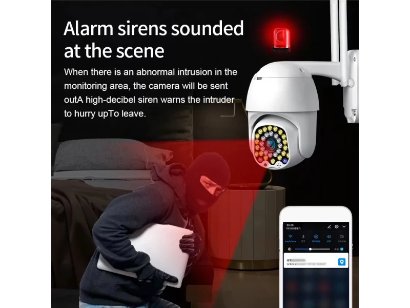 Характеристики:App: iCSeeОбектив: 3.6mmЗахранване: 12V 2A (включено в комплекта)Мегапиксели: 5MPСвързване: IP/чрез LAN кабелВидимост: 30-50МФормат за компресиране на видеоклиповете: H.265Разделителна способност:5.0MP 1080PОбектив: фиксиран с 4× цифрово увеличениеАларма действие: телефон алармаПоддържа мобилни системи: ios, AndroidВодоустойчива, подходяща за външен монтажДвупосочен звук20 лед диода бяла светлина12 инфрачервени диода за нощен режимСъдържание на пакета:2* IP камера2* Захранващ адаптер2* Пакет с винтове
