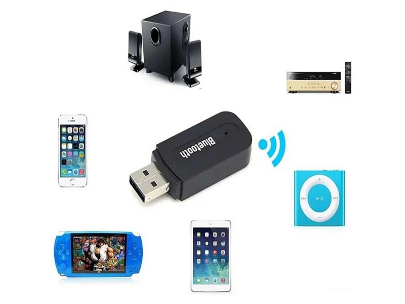 Приемникът служи за безжично слушане на музика от смартфон , телефон, таблет или компютър към AUX вход на аудио система.  Спецификации:Цвят: ЧеренBluetooth 2.1 + EDRA2DP поддръжка V1.2Захранване : 5V DCСкоростта на предаване : 3 ( Mbps )Предаване : до 10 метраЗахранва се от стандартно USB зарядно.Съвместим с всички мобилни телефони, таблети и т.н.