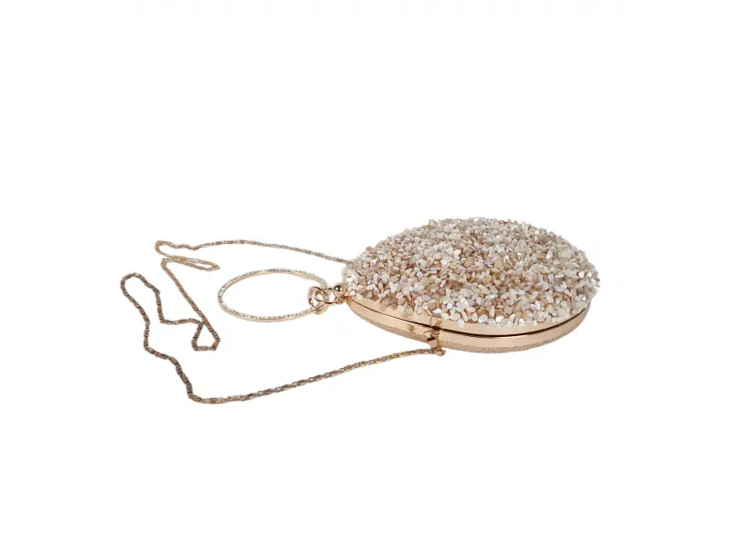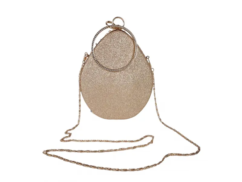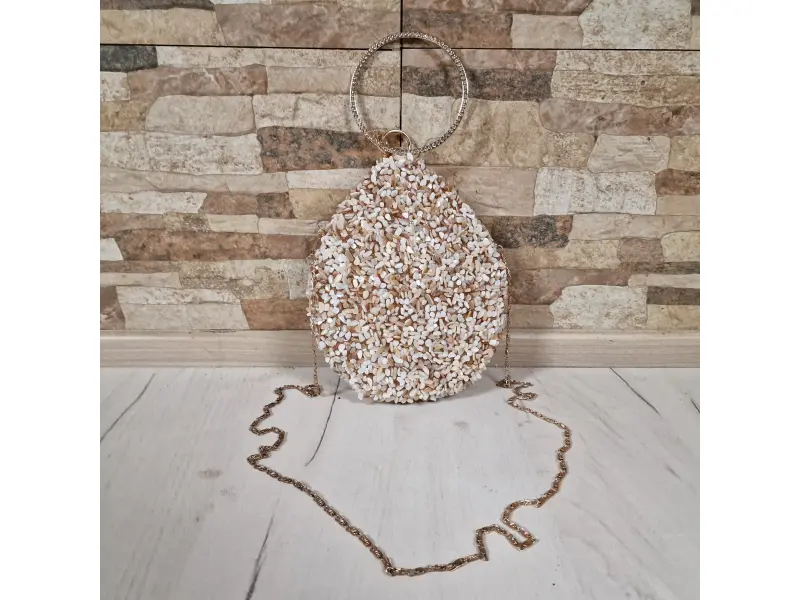 Стилна абитуриентска чанта - Официална дамска чанта с едно отделение. - Отваряне и затваряне с механизъм. - Златен кант. - Дръжка за носене в ръка. - Дълга дръжка тип верижка.
