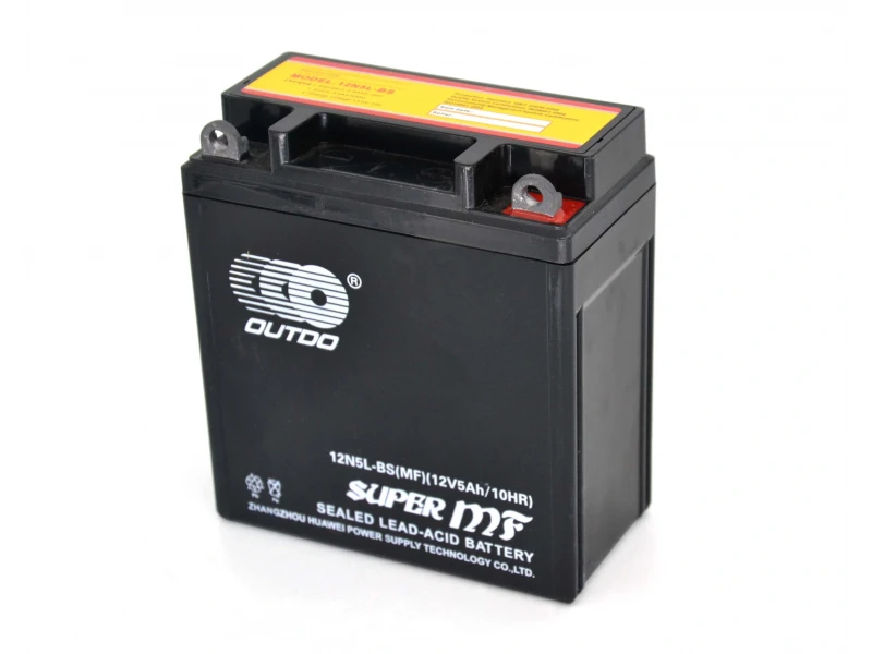 Приложение: Акумулатор 12N5L-BS 12v 5ah/10hr е с голяма устойчивост на вибрации, отлична издръжливост, висока стартова мощност и дълъг живот. 12N5L-BS 12v 5ah/10hr е отличен избор за вашия мотоциклет, мотор, скутер, ATV – бъги, джет, моторна шейна, моторна косачка и други. Марка: OUTDO Капацитет: 5 [Ah] 10hr Номинално напрежение: 12 [VDC]  Габаритни размери: 120x60x130 [mm] Изводи: десен Модел: 12N5L-BS 12v 5ah/10hr Тип акумулатор: стартерен Вид акумулатори: оловно-киселинен