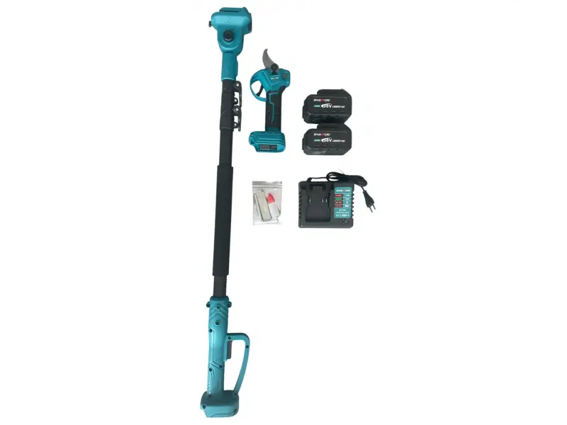 С нашия комплект акумулаторна лозарска ножица с телескопичен прът, градинарството става лесна и приятна задача. Този инструмент е идеален за рязане на клони, лозови пръчки, цветя и храсти, осигурявайки ви безпроблемно изживяване.