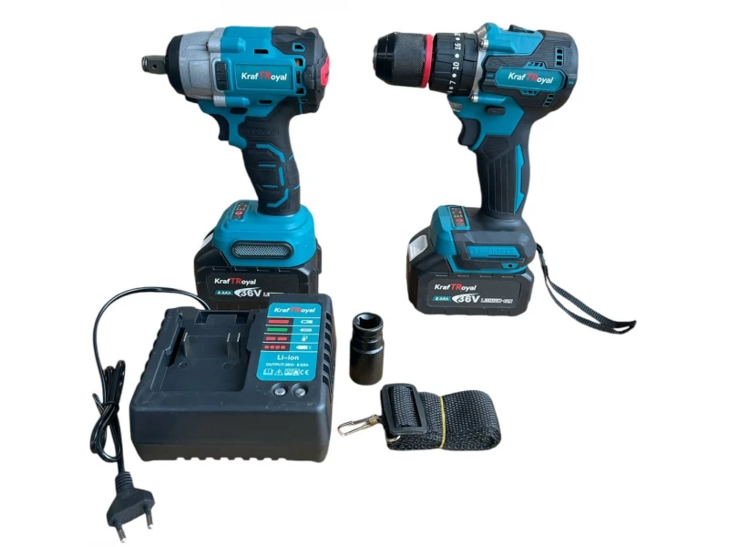 Открийте акумулаторния безчетков гайковерт и винтоверт KRAFTROYAL 36V 8AH, идеални за професионални и домашни проекти. С мощен мотор и дълъг живот на батерията, той предлага безкомпромисна производителност и удобство в удобен куфар. Подобрете вашите инструменти с KRAFTROYAL!