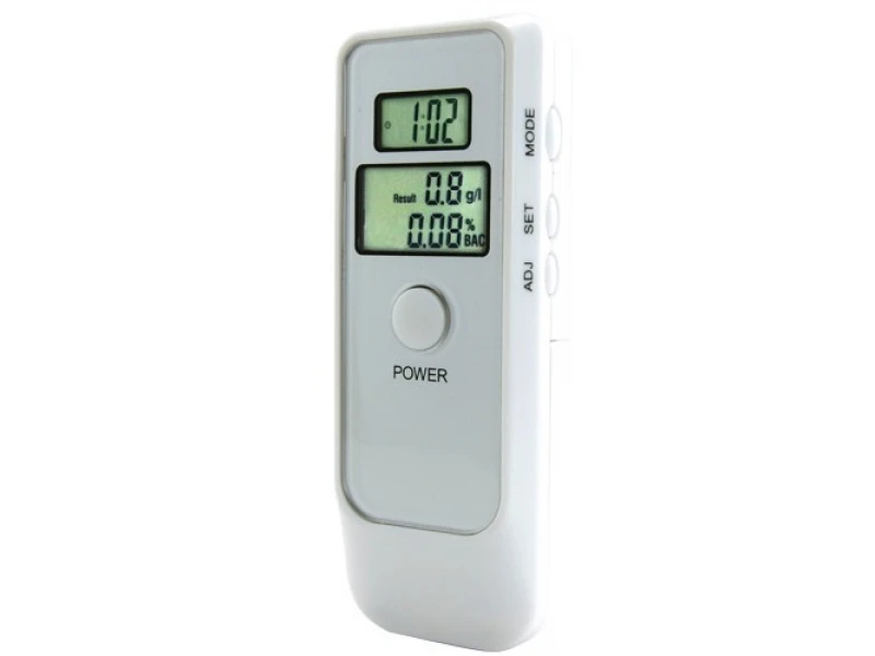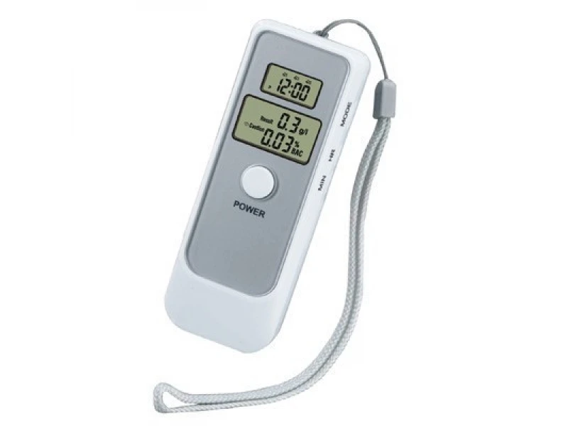 Дигитален дрегер / тестер / за алкохол с термометър и часовникДрегер с двоен LCD дисплей. Достъпен дрегер, за тези дълги нощи с лекo пийване. Използвайте го за да тествате себе си, преди полицията да го направи за вас.Този изгоден тестер за съдържание на алкохол в кръвта показва точно алкохолните промили в кръвта Ви, а също така показва и часа. Тестването е лесен процес, просто духнете за 5 секунди и ще получите резултатите Ви. Тълкуването на резултатите е също толкова лесно, защото устройството има аудио и визуални индикатори за повишено внимание и опасност при високи нива на алкохол в кръвта (BAC). Освен всичко това, имате часовник и таймер за обратно преброяване. Функции на дрегера:Два LCD - дисплея, на които се изписва час/температура/обратен таймер и резултатЧасовник с опции за 12/24 форматАлармаТаймер с обратно броенеАвтоматично изключванеВъзможност за окачване към ключодържателСпецификации:Обхват в промила : от 0 до 1,9 промилаТочност - 0,01 %Размери: 3.7 х 10 х 1.7 см.Захранване: часовник – 1хAG 13 (включена) ; дрегер – 2хААА (1,5V)Тегло: 90 гр.Цвят: бялКомплекта включва:Дигитален дрегер с терометър и часовник - 1бр.Батерия AG 13 - 1бр.Каишка за закачанеПри концентрация от 0.2 до 0.5 промила (0.5 гр./л) на дисплея на тестера се появява надпис “ВНИМАНИЕ!”, а при ниво над 0,5 промила - “ОПАСНОСТ!” и издаване на предупредителен звуков сигнал да не се управлява МПС.