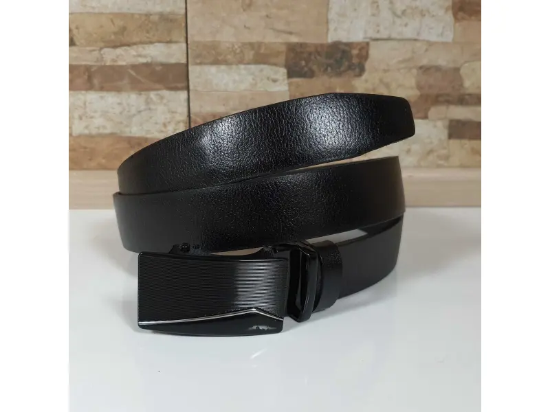 Автоматичен мъжки колан от естествена кожа Черен мъжки колан от качествена естествена кожа, подходящ за официално или ежедневно облекло. Автоматичен мъжки колан, който може да се закопчава през няколко милиметра. Колан с възможност за лесно скъсяване.