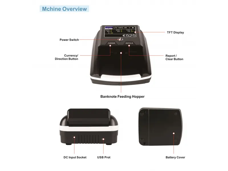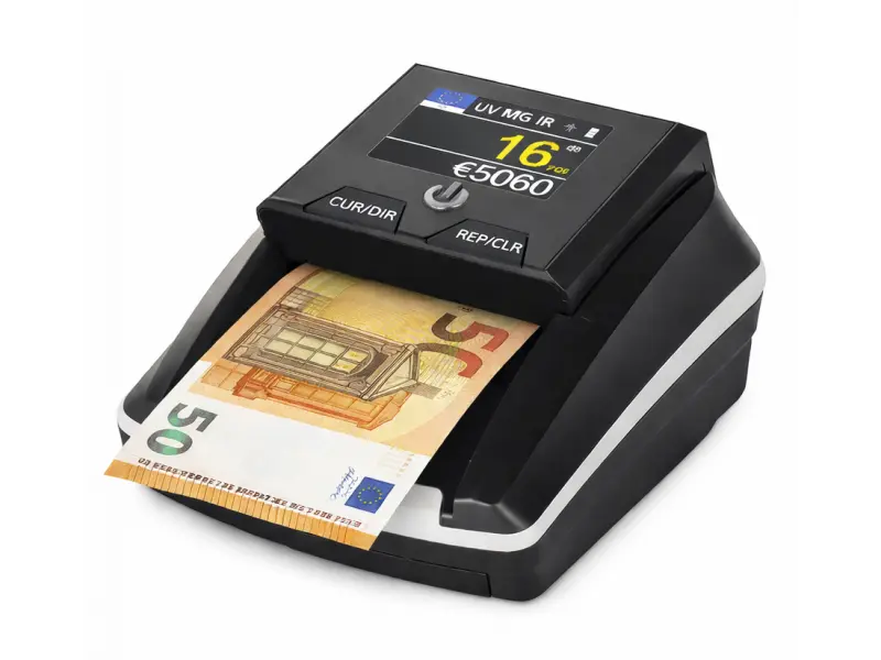 - Функции: автоматично разпознаване на валута, броене на банкноти, изчисляване на обща сума