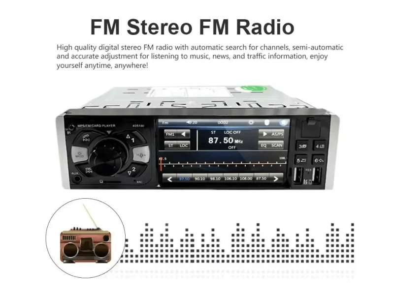 Авторадио MP5, модел 4053AI, е съвременно автомобилно мултимедийно устройство, което комбинира широк набор от функции за възпроизвеждане на медия, осигурявайки на потребителите качествено аудиовизуално изживяване в автомобила.