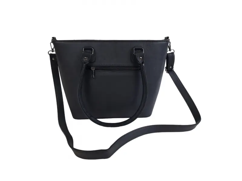 Голяма дамска чанта - Дамска чанта от еко кожа. - Три отделения затварящи се с цип. - Място за телефон и ключове. - Вътрешно джобче с цип. - Задно джобче с цип. - Удобни презрамки. - Допълнителна дълга дръжка.