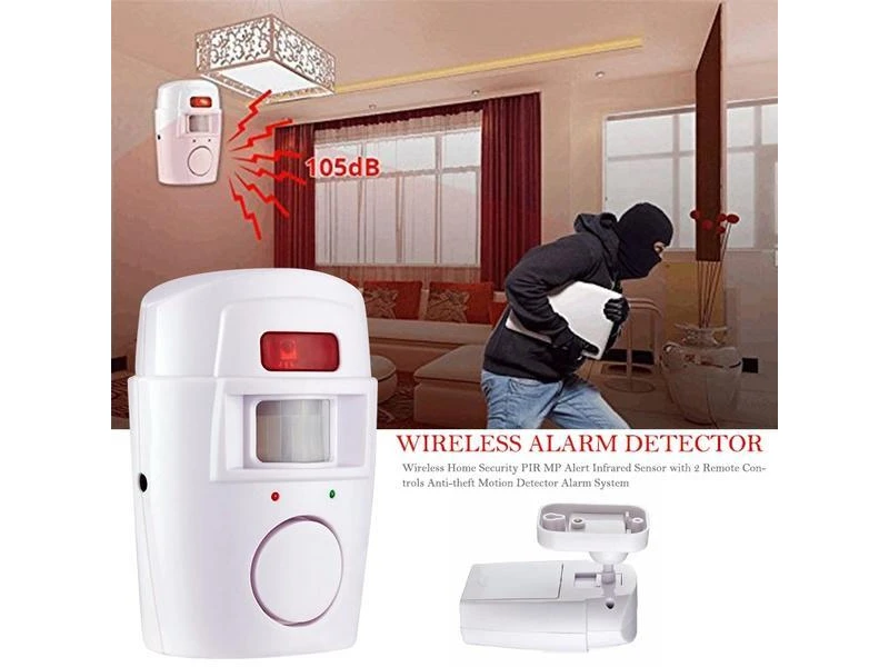 Защитете дома и офиса си, с тази безжична алармена система със сензор за движение. Осигурете си спокойствие и защита със сензорна аларма + 2 бр. дистанционни! Защитете дома си от посегателство на крадци! Защитете вашето имущество и близките си!Как работи аларма SENSOR ALARM - PIR датчик:Работи на принципа на датчик за движениеКогато се отчете движение в зоната на датчика се подава сигнал и алармата се активираАктивирането и деактивирането става, чрез два броя дистанционни устройства, според производителя работещи до 5,5 м. След напускане на дома си активирайте алармата през заключената врата. Ако в периода, в който ви няма датчика засече движение алармата ще се активира.Характеристики: Сила на звука: 105db; Време за активация: 15-18сек; Обхват на сензора: 8-10 метра; При задействане, алармата звучи около 40сек; Вграден PIR сензор за движение; Област на сканиране: 110 градуса; Безжична; Захранване: 4бр. батерии АА (включени в комплекта). Комплекта съдържа: 1бр. алармена система; 1бр. регулируема скоба за монтаж на стена; 2бр. дистанционни управления.