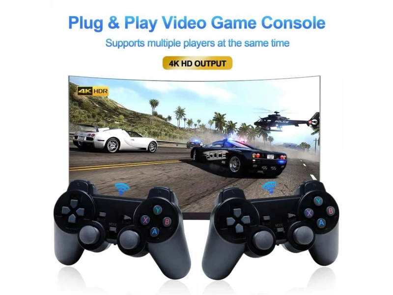 Безжична ръчна игрова конзола с два 2,4 GHz контролера, идеален подарък за деца и възрастни. Повече от 10 000 вградени класически игри.