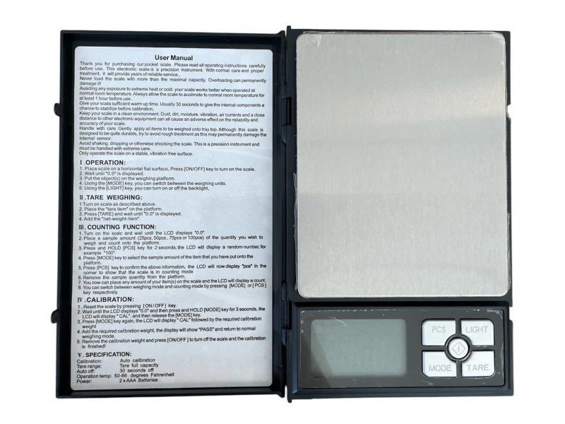 Компактна и прецизна везна NOTEBOOK за бижута и дребни предмети, с товароподемност до 500 гр и разделителна способност 0,1 гр. Идеална за златари, бижутери и колекционери.