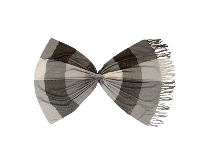 Шалът комбинира мек памук с метална нишка, което му придава блясък и удобство.