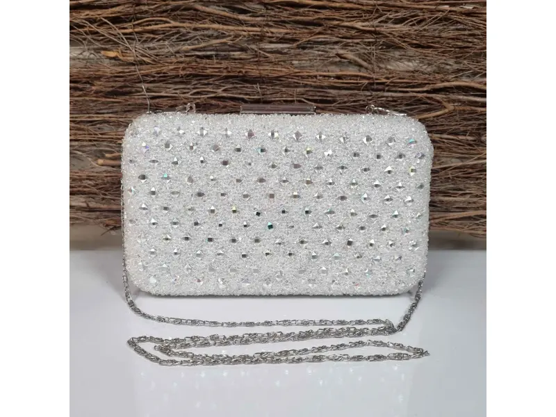 Блестяща бяла чанта - Betani. Бяла блестяща чанта с дълга дръжка тип верижка в сребърен цвят. Официална дамска чанта подходяща за специално събитие