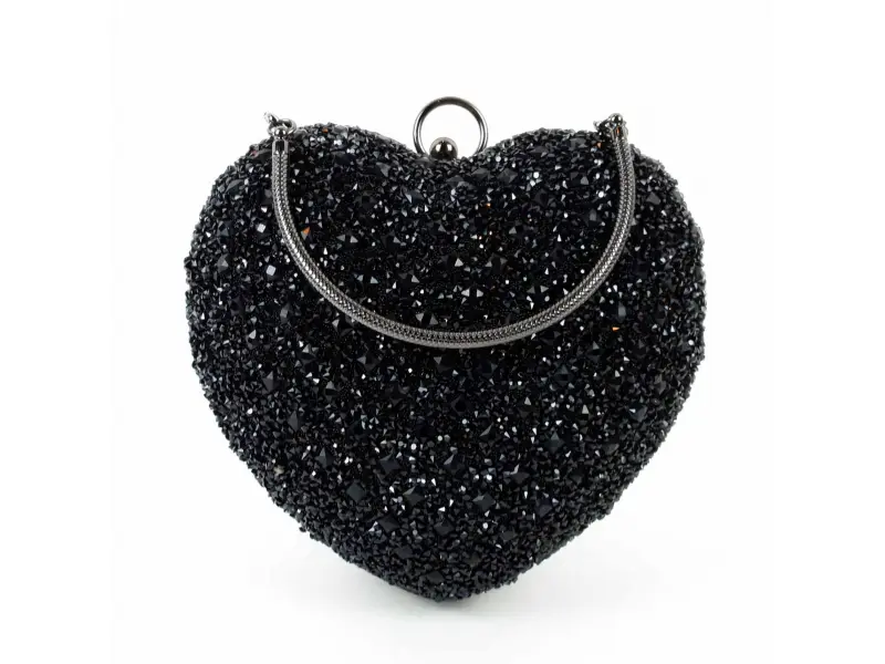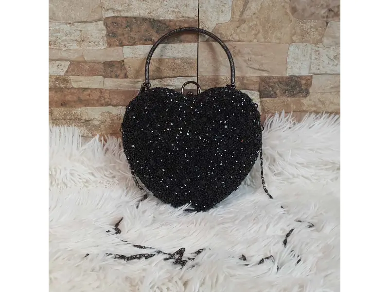 Блестяща черна чанта - сърце | Дамски чанти (ePazar.bg)