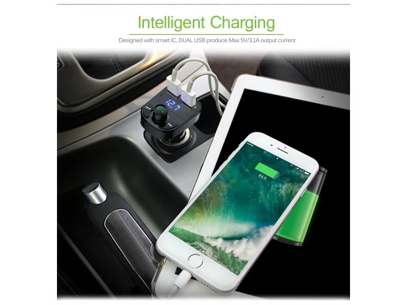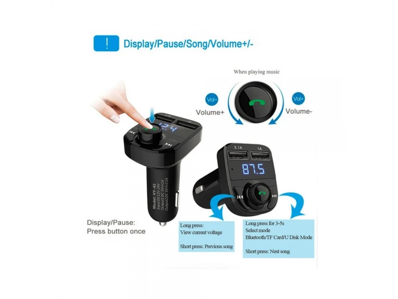 Трансмитер за кола X8 с Функция BLUETOOTH: обхват до 5 метра Функция HANDSFREE: провеждате разговори „свободни ръце“