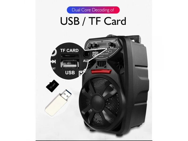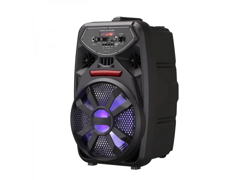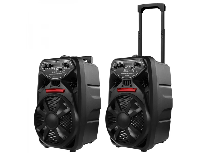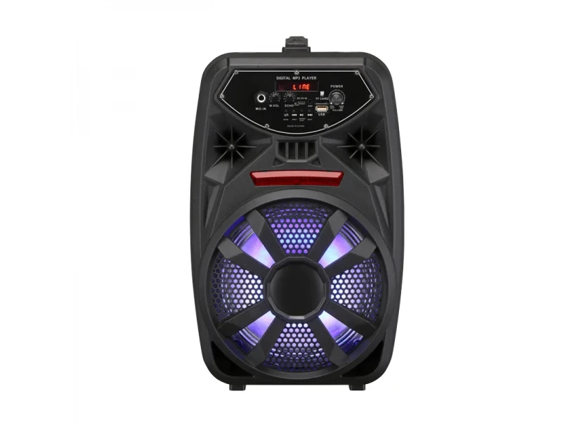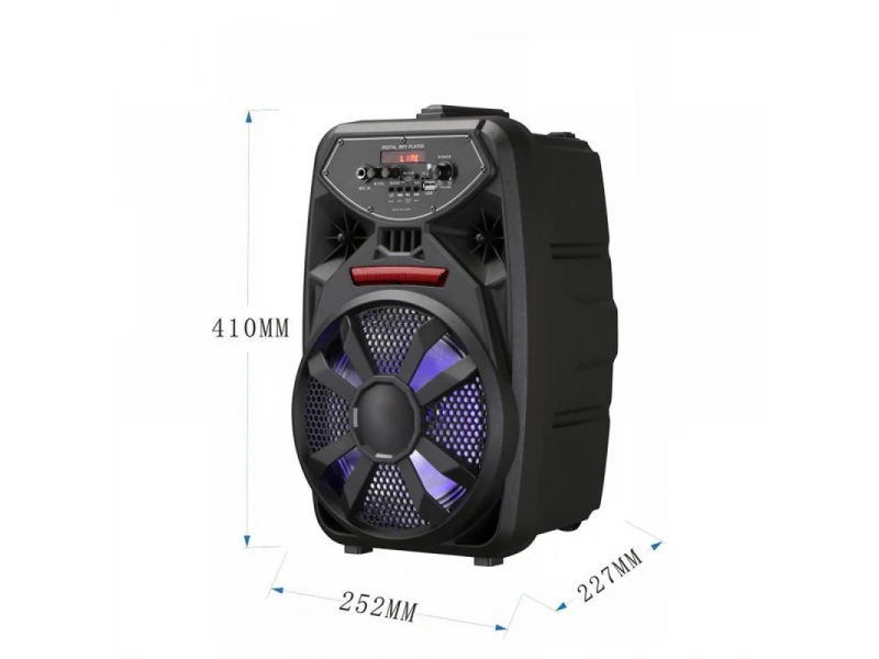 Преносима Bluetooth караоке тонколона PK-09 с FM радио, MP3 и безжичен микрофонPK-09L е изключително мощна тонколона подходяща за караоке, партита, озвучаване на сватби, ресторанти или домашни събирания. Снабдена с издръжлива батерия от 2200mAh, позволява музиката да свири с часове без да спира. Тонколоната има вградени светлини, които засилват парти обстановката – те може да се спират и пускат. Оборудвана е с колела и дръжка за по-лесно придвижване. Може също така да се закрепи на стойка за високоговорител. Може да се свърже с различни устройства чрез USB, Bluetooth, SD/TF карта или чрез AUX кабел. Тонколоната е с вградено FM радио. Високоговорителят е 8-инчов и осигурява добро качество и сила на звука.В комплекта има микрофон, благодарение на който може да се изпълнява караоке, за да бъде забавлението пълноценно!Технически характеристики:1. Изходна мощност 10W2. Честоти от 20 Hz до 20 KHz3. Акумулаторна батерия 3.7v, 2200mah4. 8 инча говорител5. Bluetooth, USB, SD/TF карта, AUX6. Микрофон7. Кабел за зареждане8. ЛЕД дисплей9. Размери: 26х22х42см– Тегло: 3 кг
