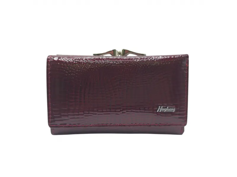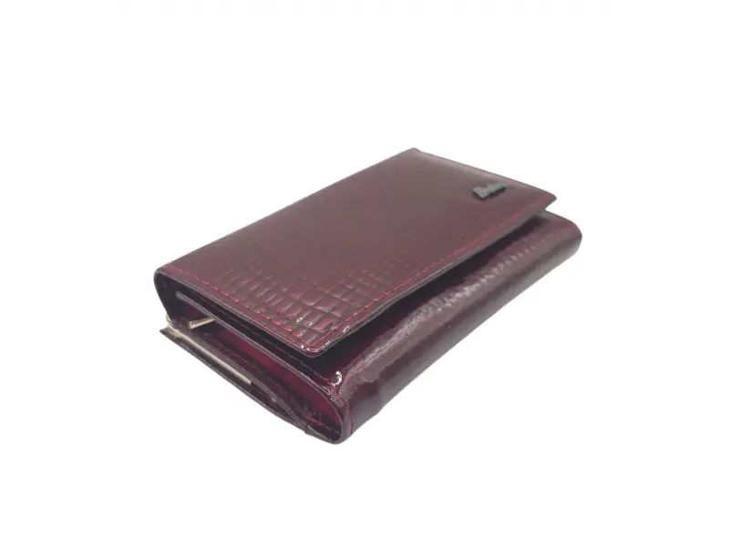 - Бордово портмоне от естествена кожа и лак.