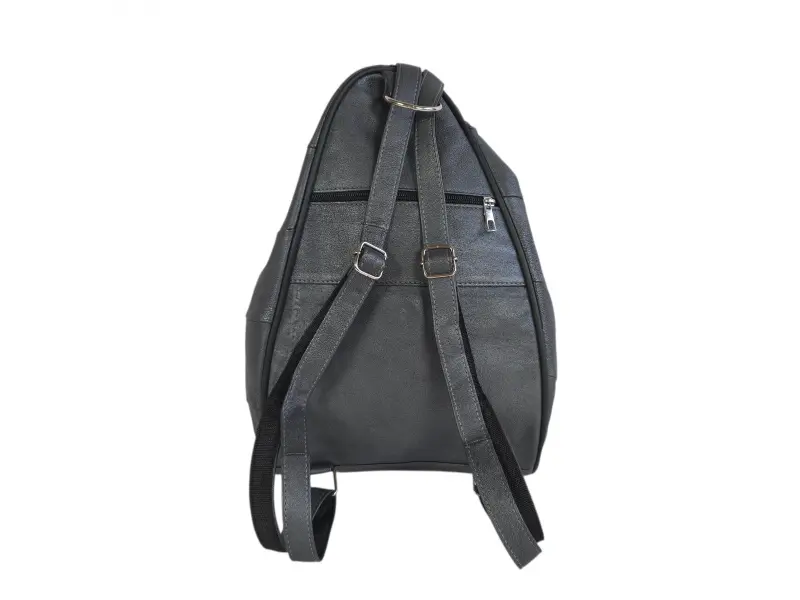 Кожена дамска раница - Дамска раница от естествена кожа. - Дамска раница, която може да се носи и като чанта. - Едно основно отделение с цип. - Малък вътрешен джоб с цип. - Два предни джоба с цип. - Заден джоб с цип. - Регулиращи се презрамки.