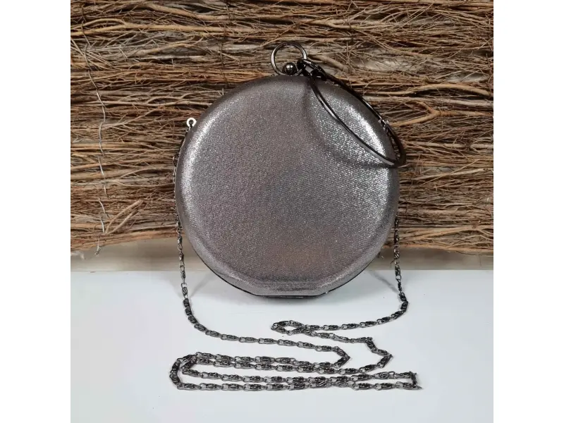Бронзова кръгла чанта - Steisi. Блестяща кръгла чанта в малък размер в красив бронзов цвят. Официална чанта с едно отделение подходяща за сватба или абитуриенски бал- ePazar.bg