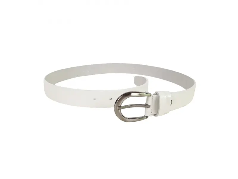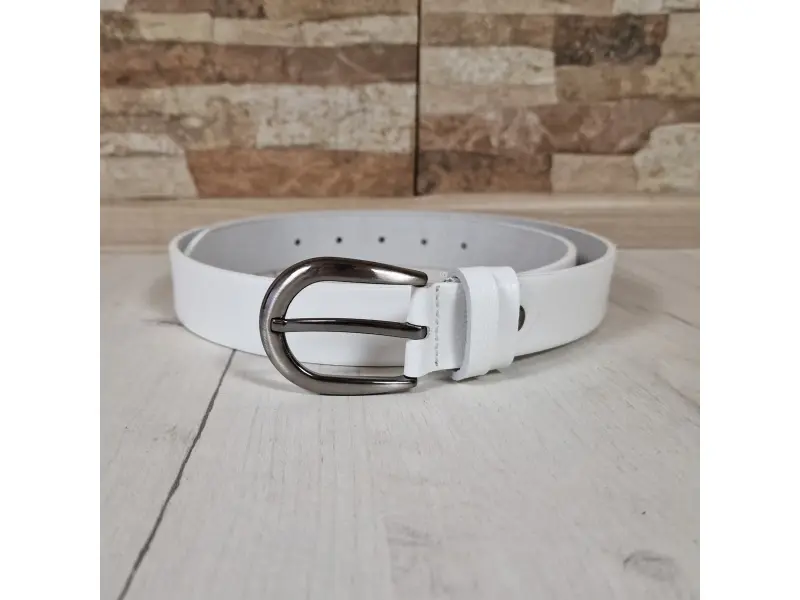 Удобен дамски колан от естествена кожа. Стилен колан подходящ за дънки и панталони, който може да се скъсява лесно. Бял колан с метална тока.