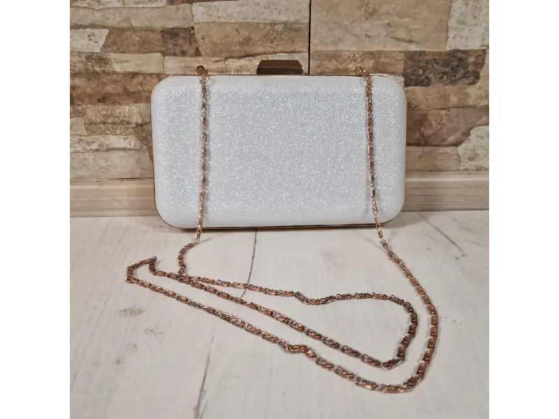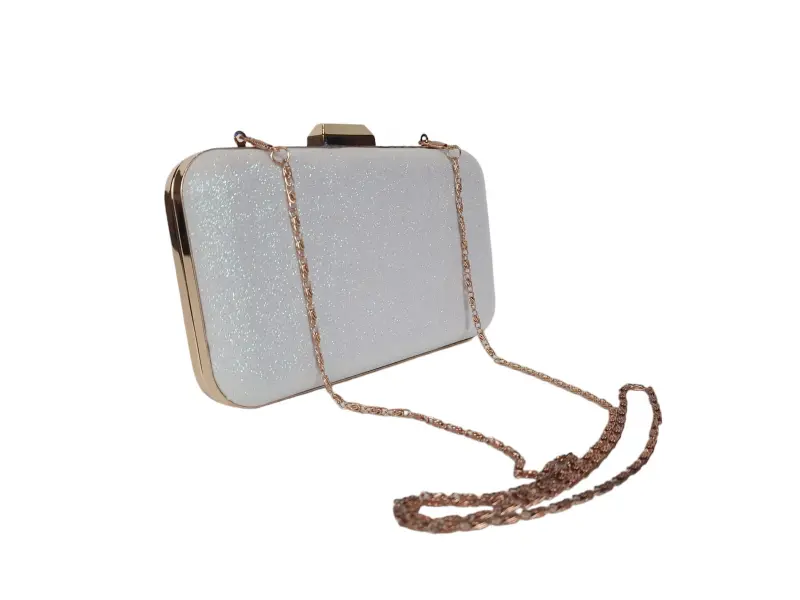Блестяща елегантна чанта - Официална дамска чанта с едно отделение. - Отваряне и затваряне с механизъм. - Златен кант. - Дълга дръжка тип верижка.