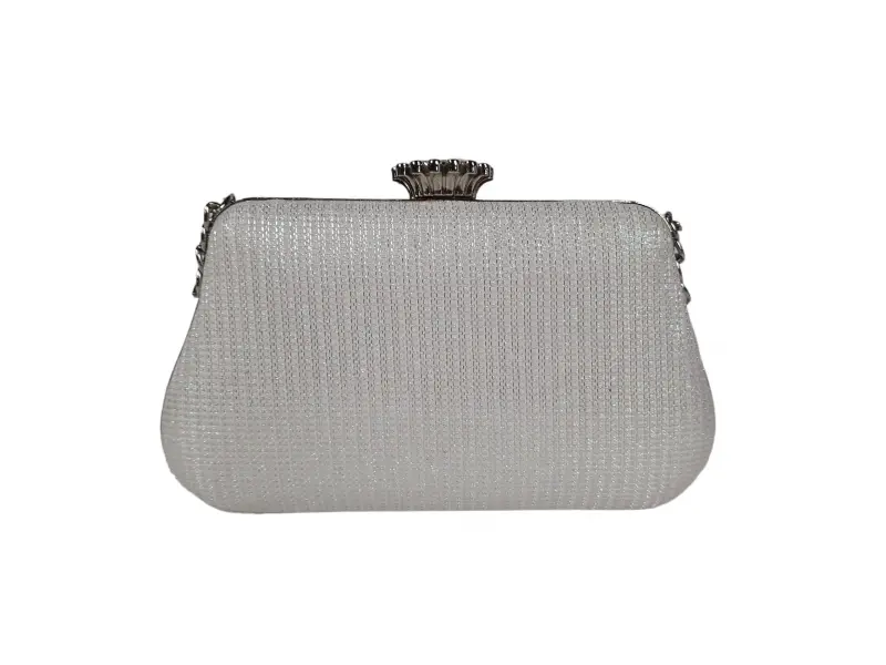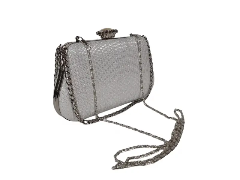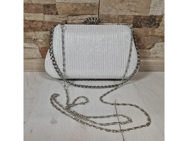 Абитуриентска чанта - Официална дамска чанта с едно отделение. - Отваряне и затваряне с механизъм. - Метален кант. - Дръжка за носене в ръка. - Дълга дръжка тип верижка.