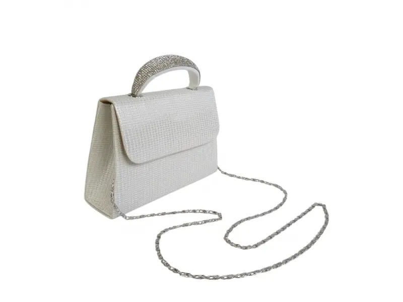 Бяла официална абитуриентска чанта с уникален и стилен дизайн – перфектният аксесоар за вашия специален ден. Модерна елегантна дамска чанта изроботена от качествени материали.