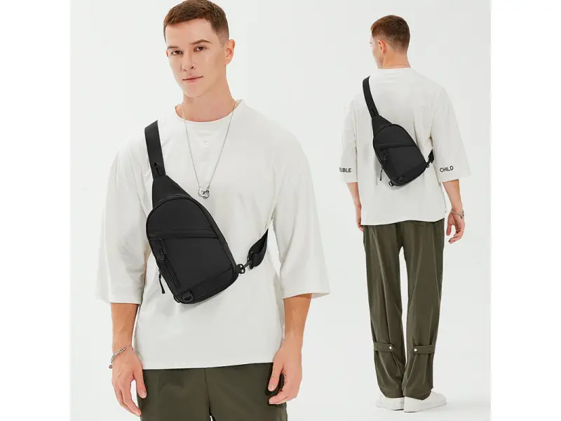 - Мъжка чанта, която може да се носи през гърди, рамо или гръб тип раница.