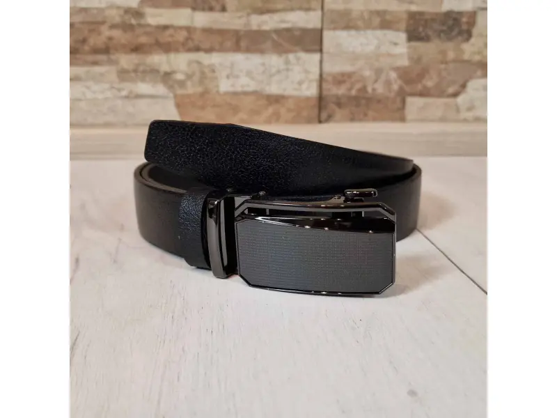 Черен мъжки колан от качествена естествена кожа, подходящ за официално или ежедневно облекло. Автоматичен мъжки колан, който може да се закопчава през няколко милиметра. Колан с възможност за лесно скъсяване.