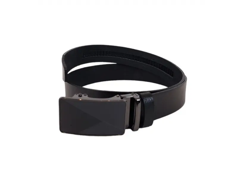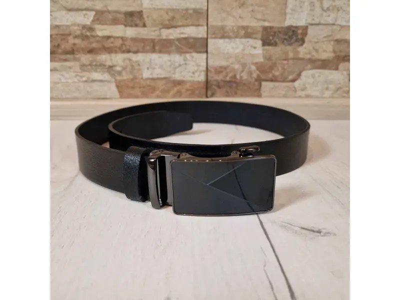 Мъжки колан със стилна тока Черен мъжки колан от качествена естествена кожа, подходящ за официално или ежедневно облекло. Автоматичен мъжки колан, който може да се закопчава през няколко милиметра. Колан с възможност за лесно скъсяване.