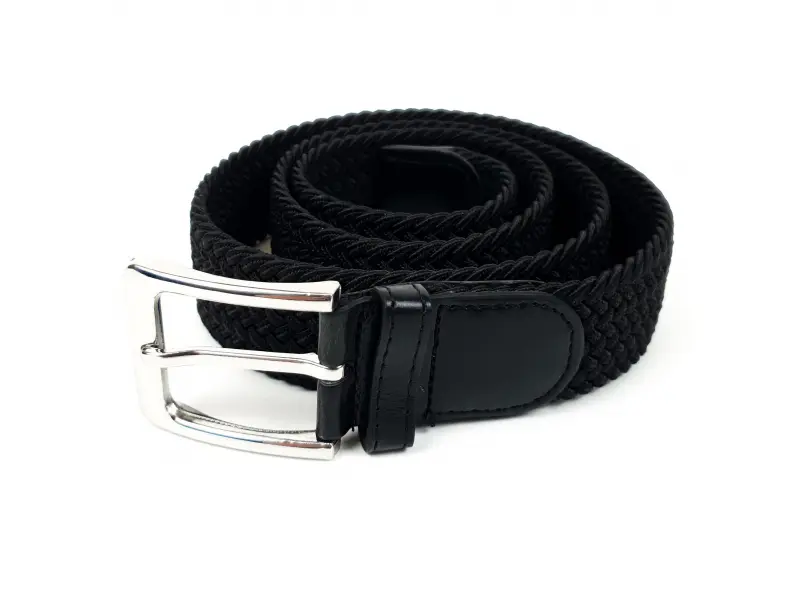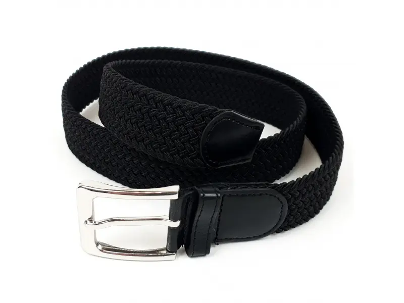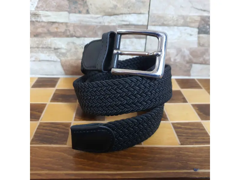 Мъжки черен ластичен колан със здрава плетка на нишите , метална катарама. Черен колан изработен от специална технологията , която не позволява колана да се разтяга повече от предвидимото. Предимство е , че може да се закопчава по цялата дължина на колана.