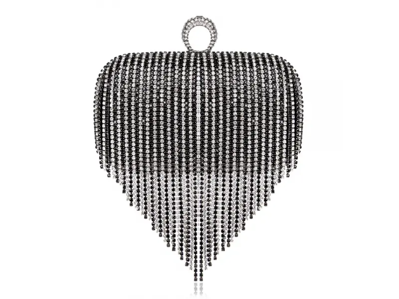 Стилна абитуриентска чанта с камънчета - Официална дамска чанта с едно отделение. - Отваряне и затваряне с механизъм. - Сребърен кант. - Дълга дръжка тип верижка.