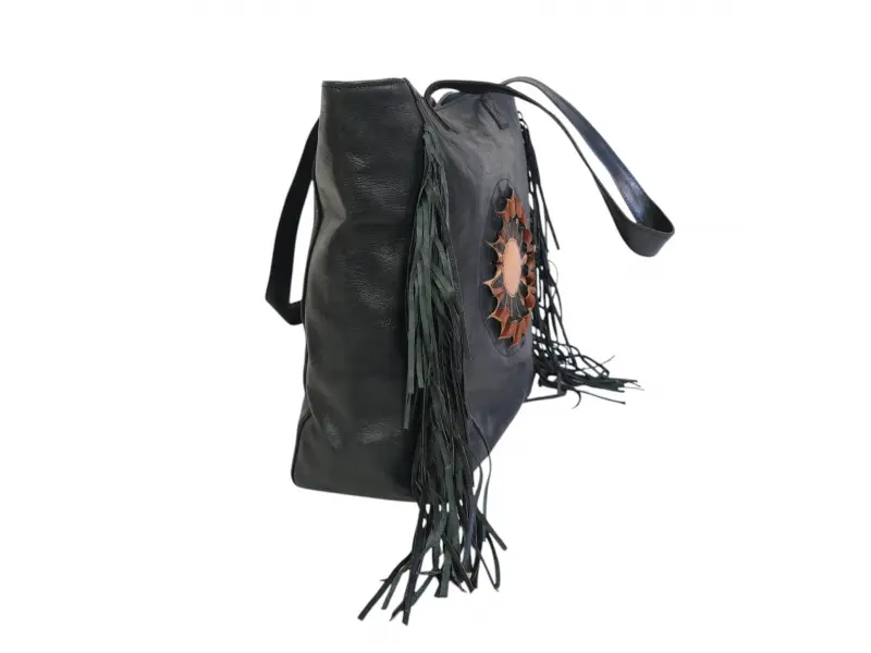 Уникална дамска чанта от естествена кожа, ръчно изработена. Мароканска дамска чанта с уникален дизайн със слънце и ресни. Стилна дамска чанта с удобни дръжки. - ePazar.bg