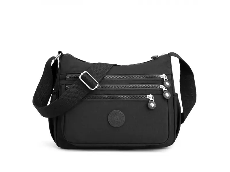 Компактна дамска чанта от качествен текстил в черен цвят. Здрава и компактна дамска чанта с много джобчета, отделения за бутилки и регулираща се дръжка - ePazar.bg