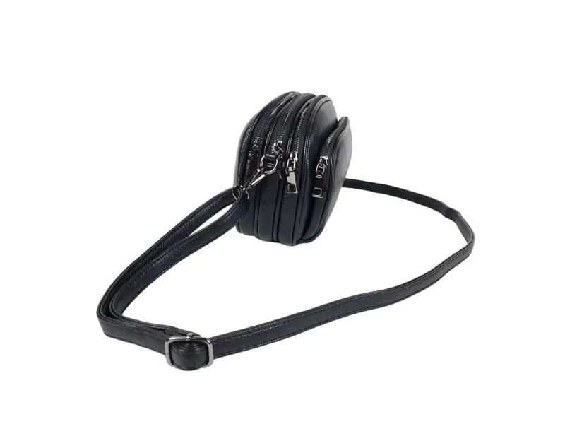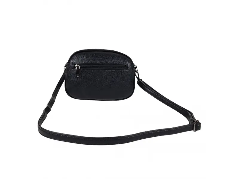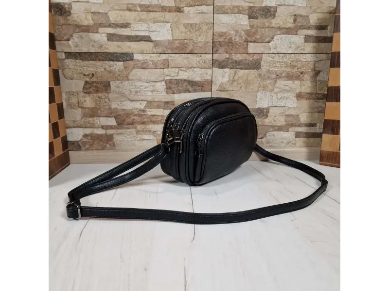 Ежедневна малка дамска чанта в черен цвят - Малка дамска чанта от еко кожа. - Три основни отделения с цип. - Малко вътрешно джобче с цип. - Малко вътрешно джобче без цип. - Преден джоб с цип. - Заден джоб с цип. - Регулираща се дълга дръжка.