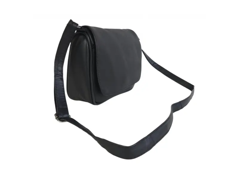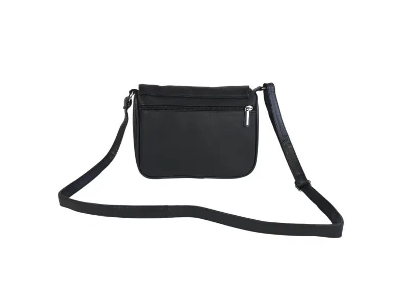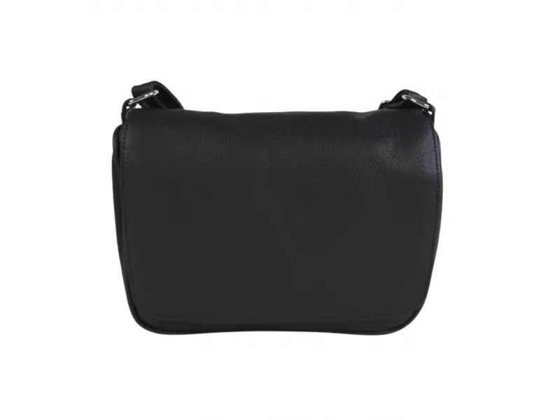 Удобна дамска чанта - Дамска чанта от естествена кожа. - Едно основно отделение с цип и капак с магнитно закопчаване. - Малко вътрешно джобче с цип. - Преден джоб под капака с цип. - Заден джоб с цип. - Регулираща се се дълга дръжка.