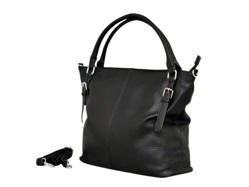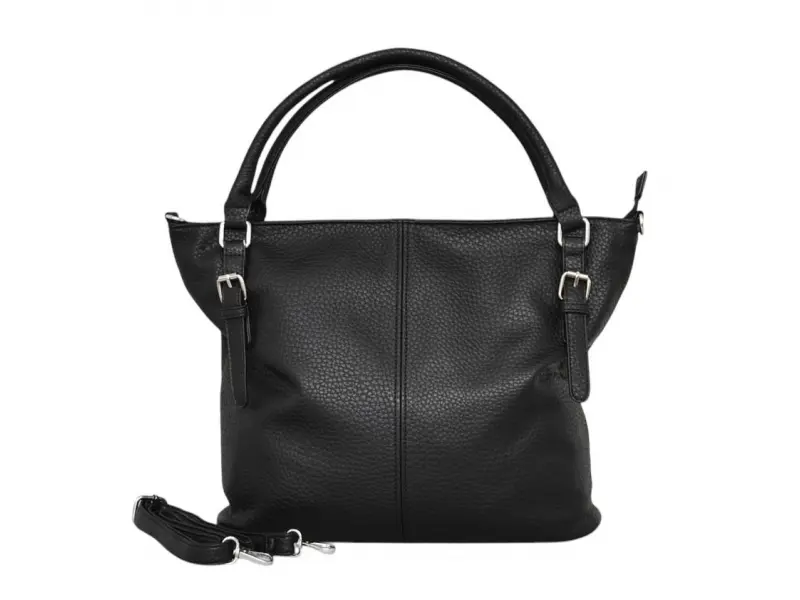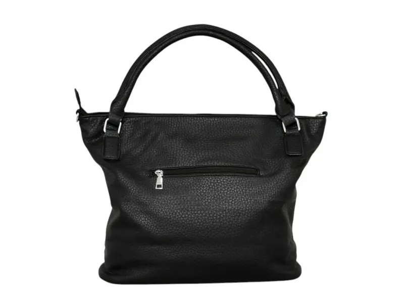 Голяма дамска чанта от качествена изкуствена кожа. Ежедневна дамска чанта с практични отделения и удобни презрамки за носене. Черна дамска чанта с интересен дизайн.