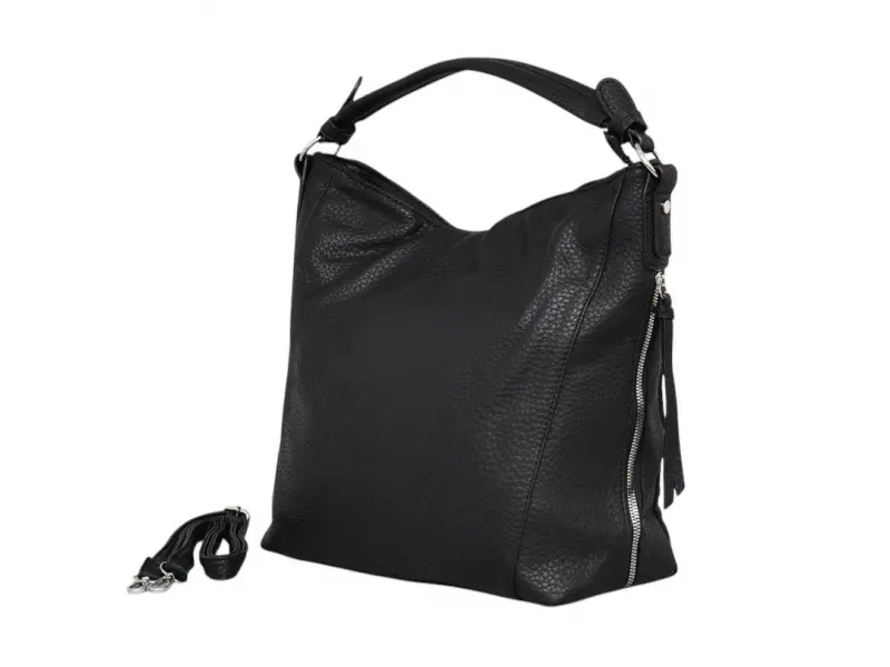 Голяма дамска чанта - Дамска чанта от изкуствена кожа. - Едно основно отделение с цип. - Вътрешна преграда с цип. - Вътрешно джобче с цип. - Вътрешно отделение за телефон и ключове. - Два странични джоба с цип. - Заден джоб с цип. - Удобна дръжка за носене. - Дълги регулиращи се дръжки.