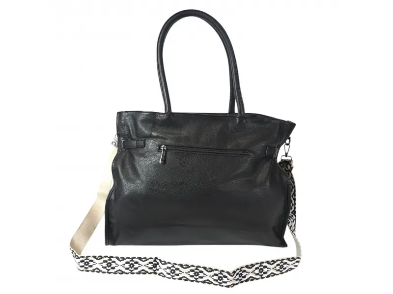 Голяма чанта от Италия - Дамска чанта от еко кожа. - Едно отделение затварящо се с цип. - Вътрешна преграда с цип. - Място за телефон и ключове. - Вътрешно джобче с цип. - Вътрешно джобче без цип. - Задно джобче с цип. - Удобни презрамки. - Допълнителна дълга дръжка.