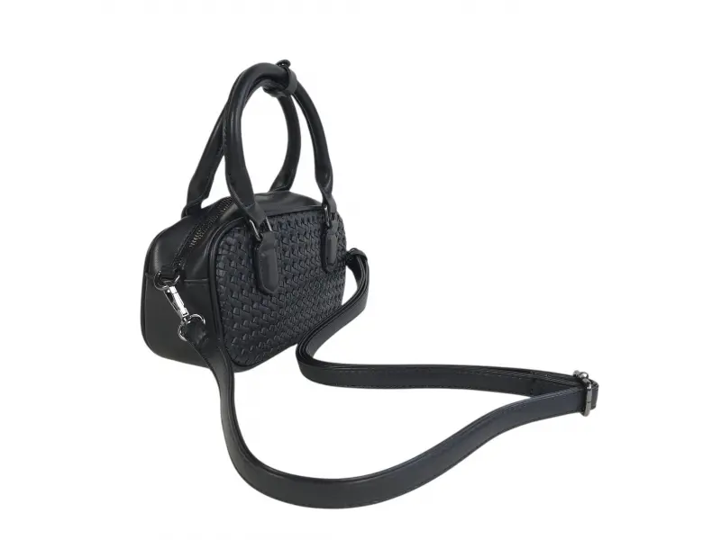 Дамска чанта от висококачествена изкуствена кожа. Черна дамска чанта в малък размер подходяща както за ежедневието така и за срещи. Качествена дамска чанта с удобни дръжки.