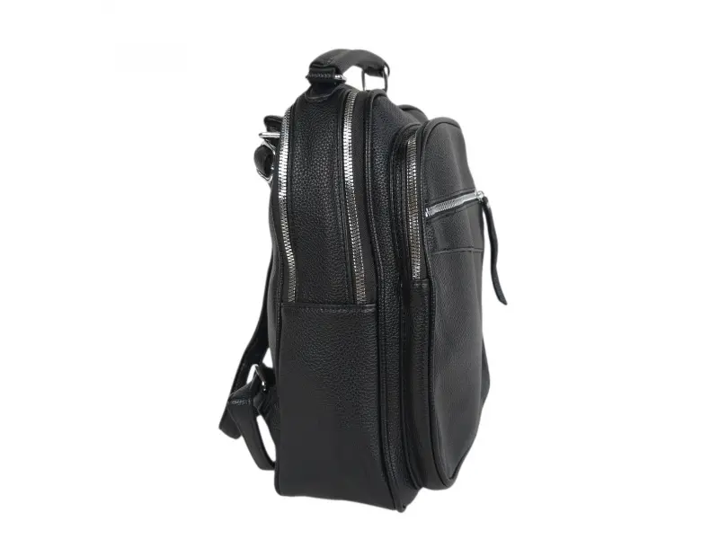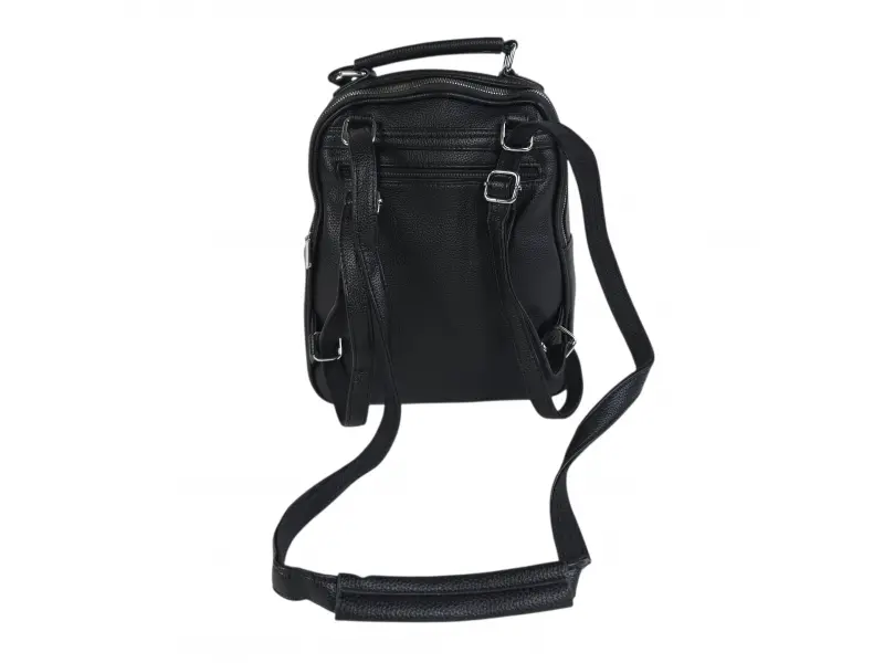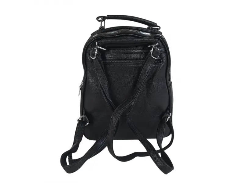 Ежедневна дамска раница - Дамска раница от еко кожа. - Две основни отделения с цип. - Вътрешен джоб с цип. - Вътрешен джоб без цип. - Два предни джоба с цип. - Заден джоб с цип. - Дръжка за носене на рамо. - Дръжка за носене в ръка. - Регулиращи се презрамки.