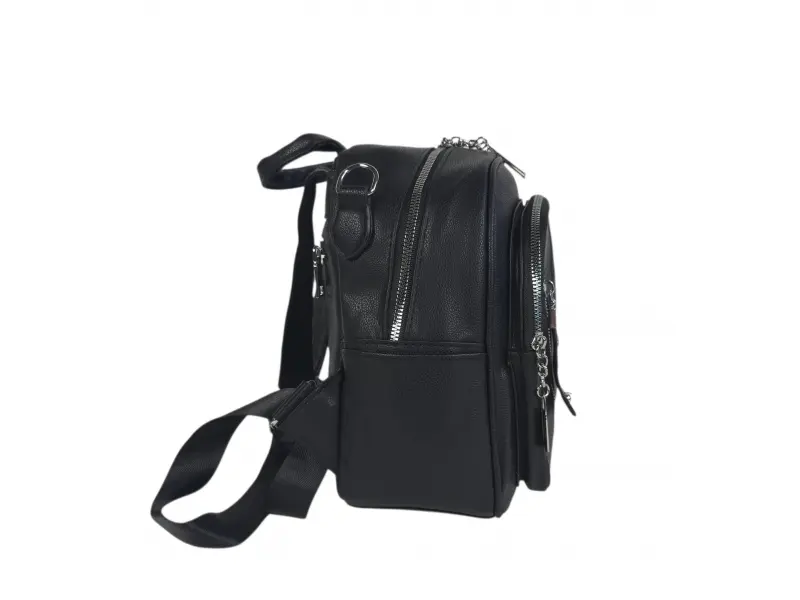 Дамска раница от висококачествена изкуствена кожа. Черна раница с красив и актуален дизайн с удобни отделения. Ежедневна дамска раница с удобни регулиращи се презрамки.