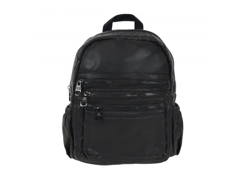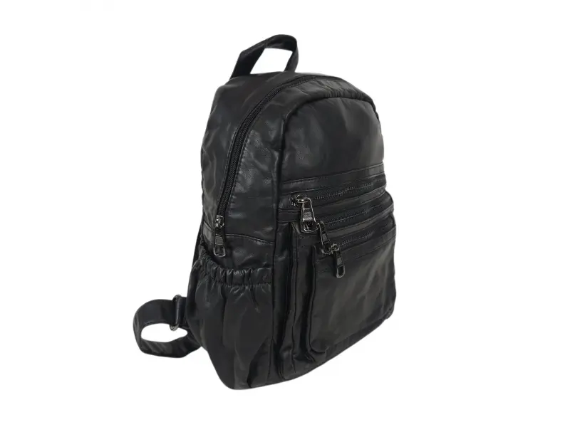 Актуална дамска раница - Дамска раница от варена кожа. - Едно голямо отделение с цип. - Вътрешен джоб с цип. - Отделение за телефон и документи. - Три предни джоба с цип. - Два странични джоба. - Дръжка за носене в ръка. - Регулиращи се презрамки.