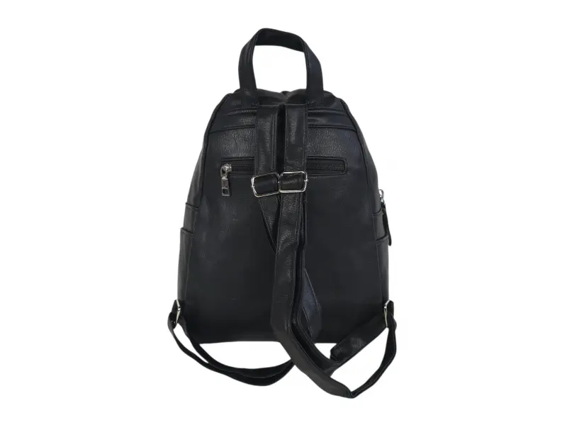 Дамска раница от висококачествена изкуствена кожа. Черна раница с красив и актуален дизайн с удобни отделения. Ежедневна дамска раница с удобни регулиращи се презрамки.