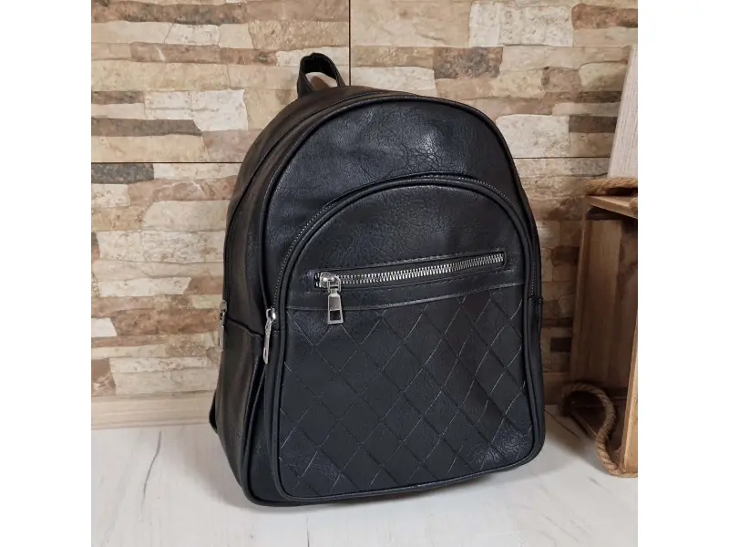 Интересен модел дамска раница - Дамска раница от еко кожа. - Едно голямо отделение с цип. - Вътрешен джоб с цип. - Два предни джоба се с цип. - Дръжка за носене в ръка. - Регулиращи се презрамки.