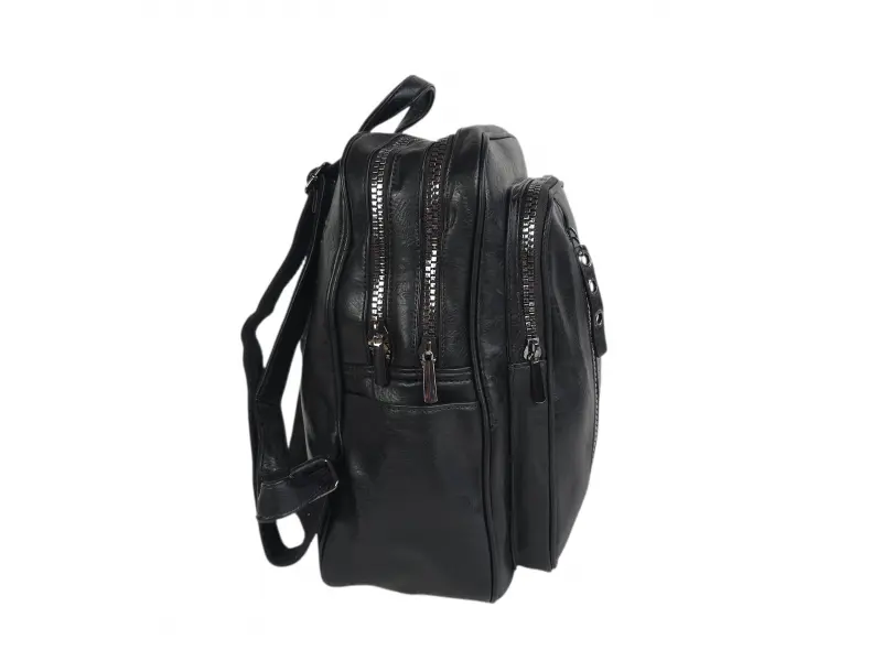 Актуален модел дамска раница - Дамска раница от еко кожа. - Две основни отделения с цип. - Вътрешен джоб с цип. - Вътрешен джоб без цип. - Два предни джоба с цип. - Заден джоб с цип. - Два странични джоба. - Дръжка за носене в ръка. - Регулиращи се презрамки.