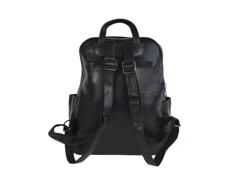 Дамска раница от висококачествена изкуствена кожа. Черна раница с красив и актуален дизайн с удобни отделения. Ежедневна дамска раница с удобни регулиращи се презрамки.