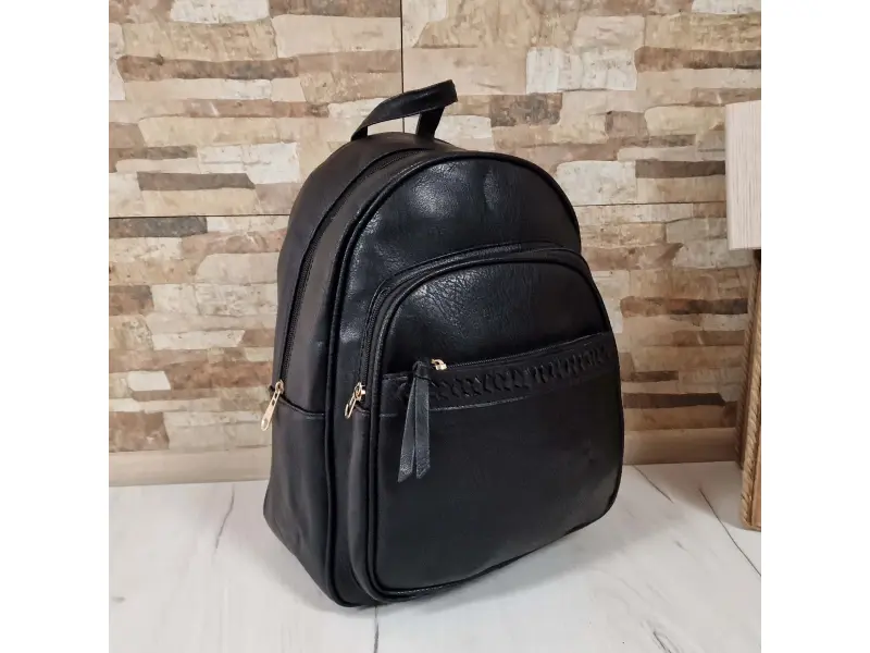 Ежедневна дамска раница - Дамска раница от еко кожа. - Едно голямо отделение с цип. - Вътрешен джоб с цип. - Два предни джоба се с цип. - Дръжка за носене в ръка. - Регулиращи се презрамки.