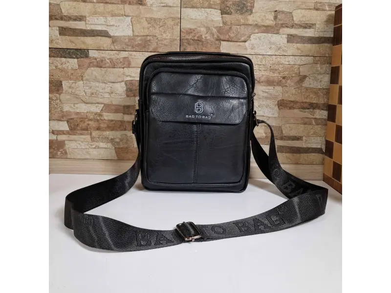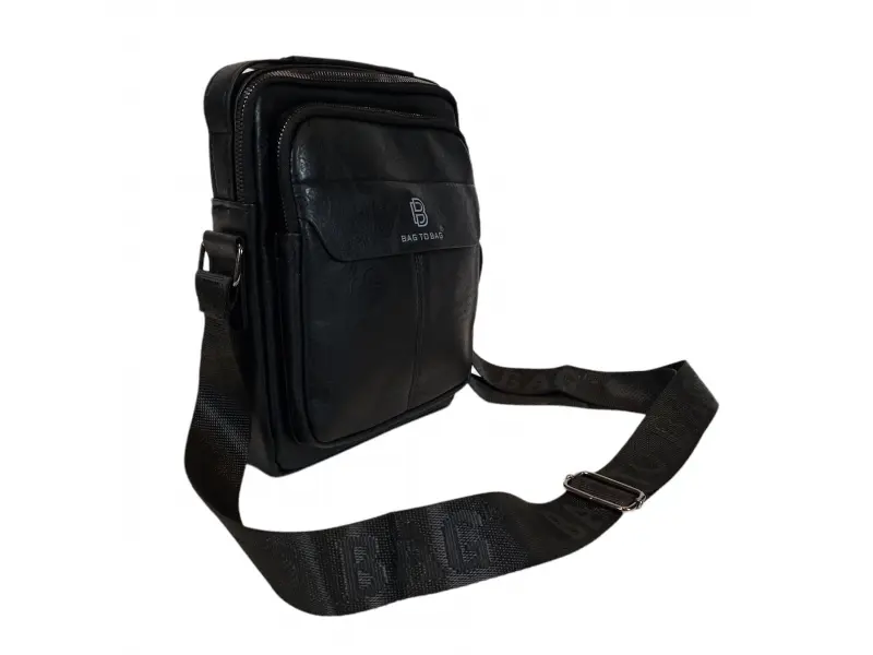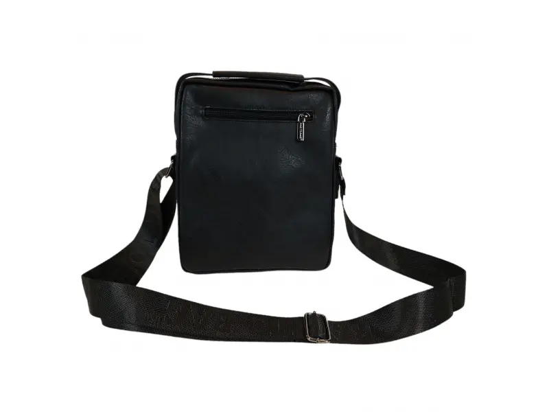 Мъжка чанта от качествена еко кожа в черен цвят. Удобна чанта с едно основно отделение с цип, малко вътрешно джобче с цип, два предни джоба с цип и заден джоб с цип. Здрава мъжка чанта с удобна дръжка за носене в ръка и регулираща се дълга дръжка.