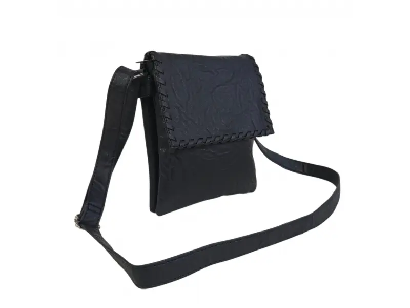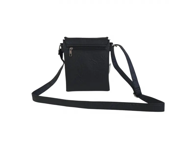 Мъжка чанта с капак - Мъжка чанта от еко кожа. - Две основни отделения с общ цип. - Малък вътрешен джоб без цип. - Среден джоб без цип. - Заден джоб с цип. - Капакът се закопчава с магнит. - Дълга регулираща се дръжка.