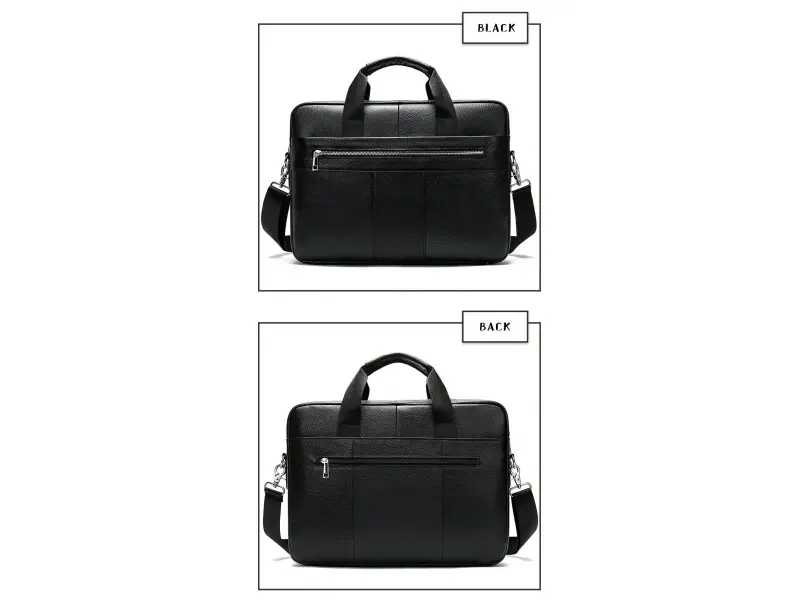 Голяма бизнес чанта от естествена кожа - Едно основно отделение с цип. - Отделение за лаптоп затварящо се с лепенки . - Вътрешен джоб с цип. - Отделение за телефон. - Отделение за документи. - Два предни джоба с цип. - Заден джоб с цип. - Удобни дръжки за носене. - Дълга регулираща се дръжка.